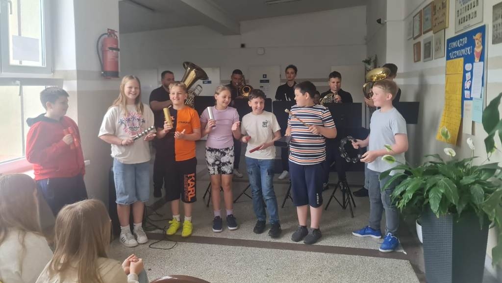 2.06.2025 roku w naszej szkole gościliśmy wyjątkowych gości- muzyków z Młodzieżowej Orkiestry Dętej w Konopiskach.