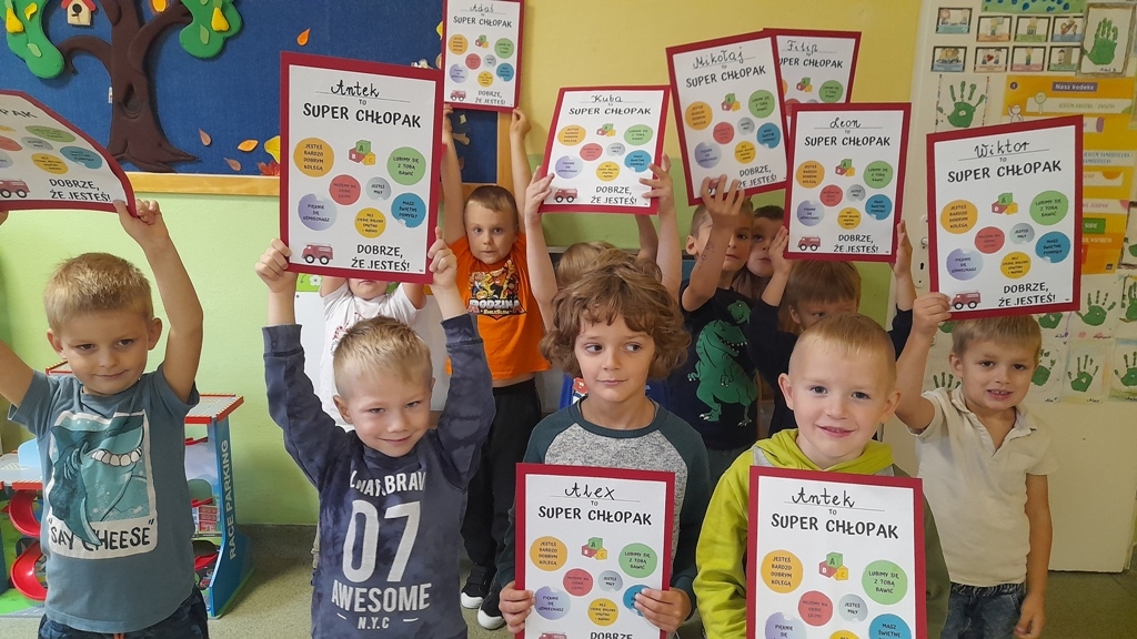 Dnia 30 września obchodziliśmy w przedszkolu Dzień Chłopaka. Była to okazja do docenienia chłopców poprzez życzenia, zabawy, a także wręczenie drobnych upominków. Nie zabrakło też sesji zdjęciowej.
