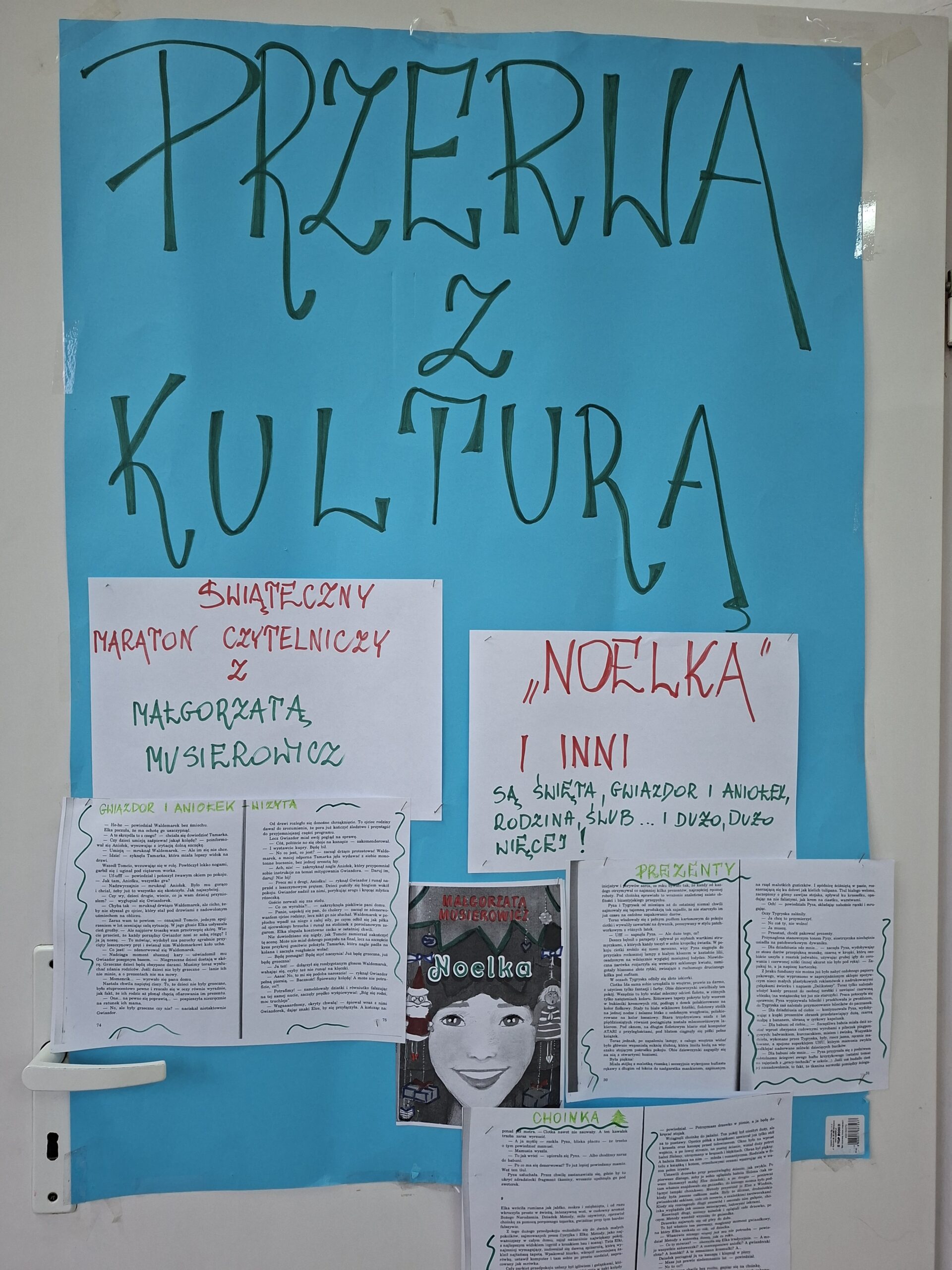Na przedświąteczne i świąteczne dni w ramach Przerwy z Kulturą propozycja czytelnicza : „Noelka” Małgorzaty Musierowicz i pozostałe tomy Jeżycjady –  cyklu powieści lubianego nie tylko przez młodzież .