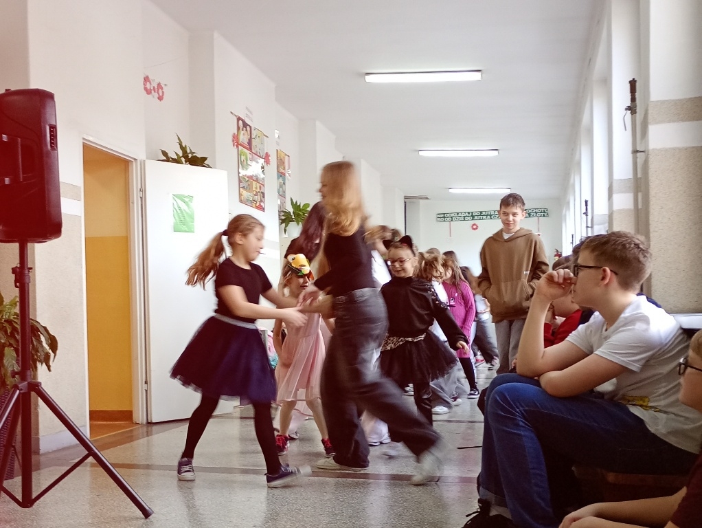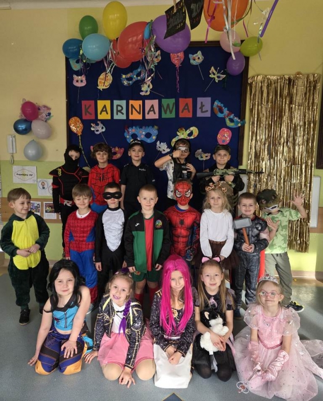 Dzień 13 lutego był w naszym Zespole Szkolno – Przedszkolnym bardzo karnawałowy i magiczny. Wszyscy czekali na niego z ogromną niecierpliwością. Już od samego rana sale zamieniły się w kolorową krainę pełną balonów, serpentyn i błyszczących ozdób. W powietrzu unosiła się radosna atmosfera, a korytarzami przechadzały się księżniczki, superbohaterowie, zwierzątka, wróżki i rycerze.